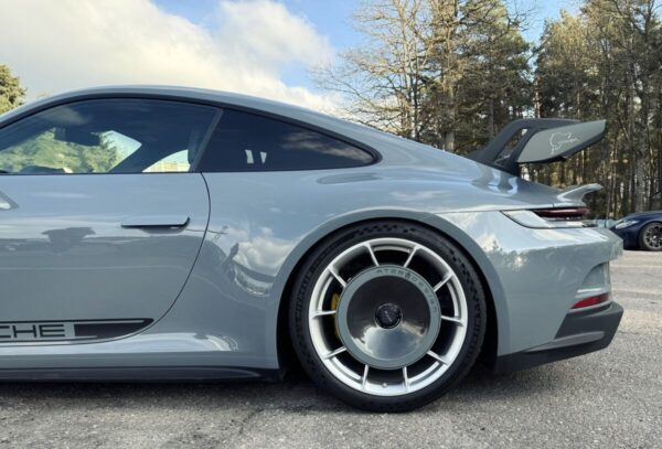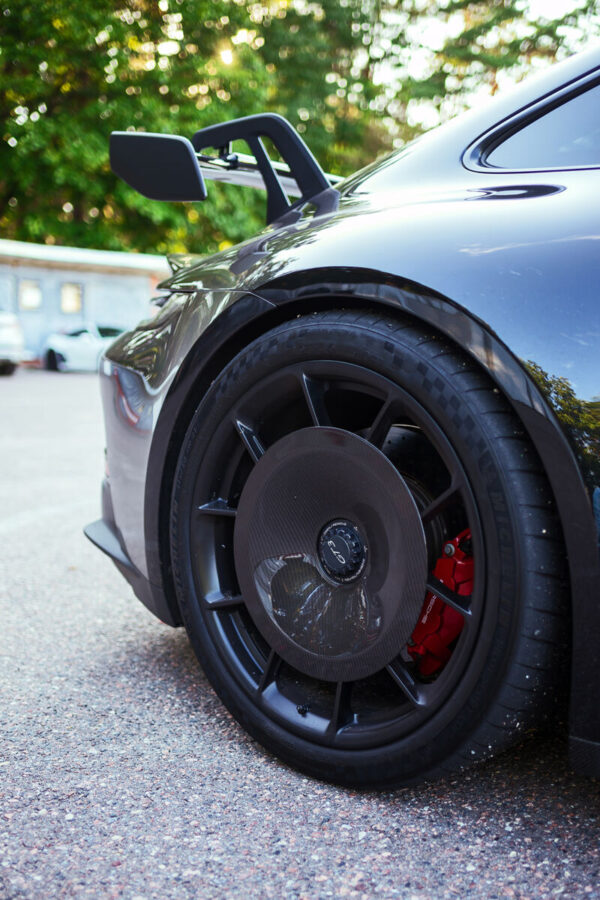 Suojaa ja tyylittele Porsche 992 GT3:si takapyörät aerodynaamisilla levysuojilla, jotka sisältävät valmiiksi leikatun PPF-vinyylin.